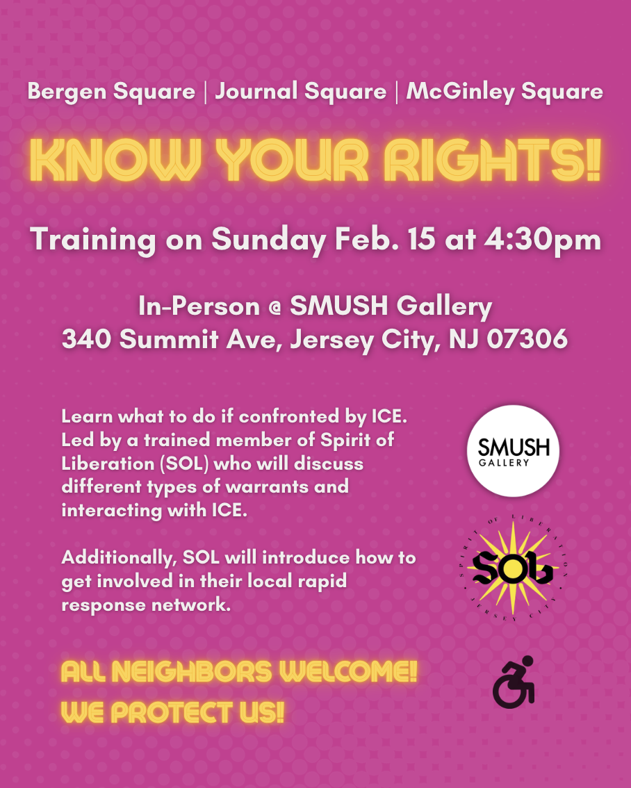 Learn what to do if confronted by ICE. Led by a trained member of Spirit of Liberation (SOL) who will discuss different types of warrants and interacting with ICE.